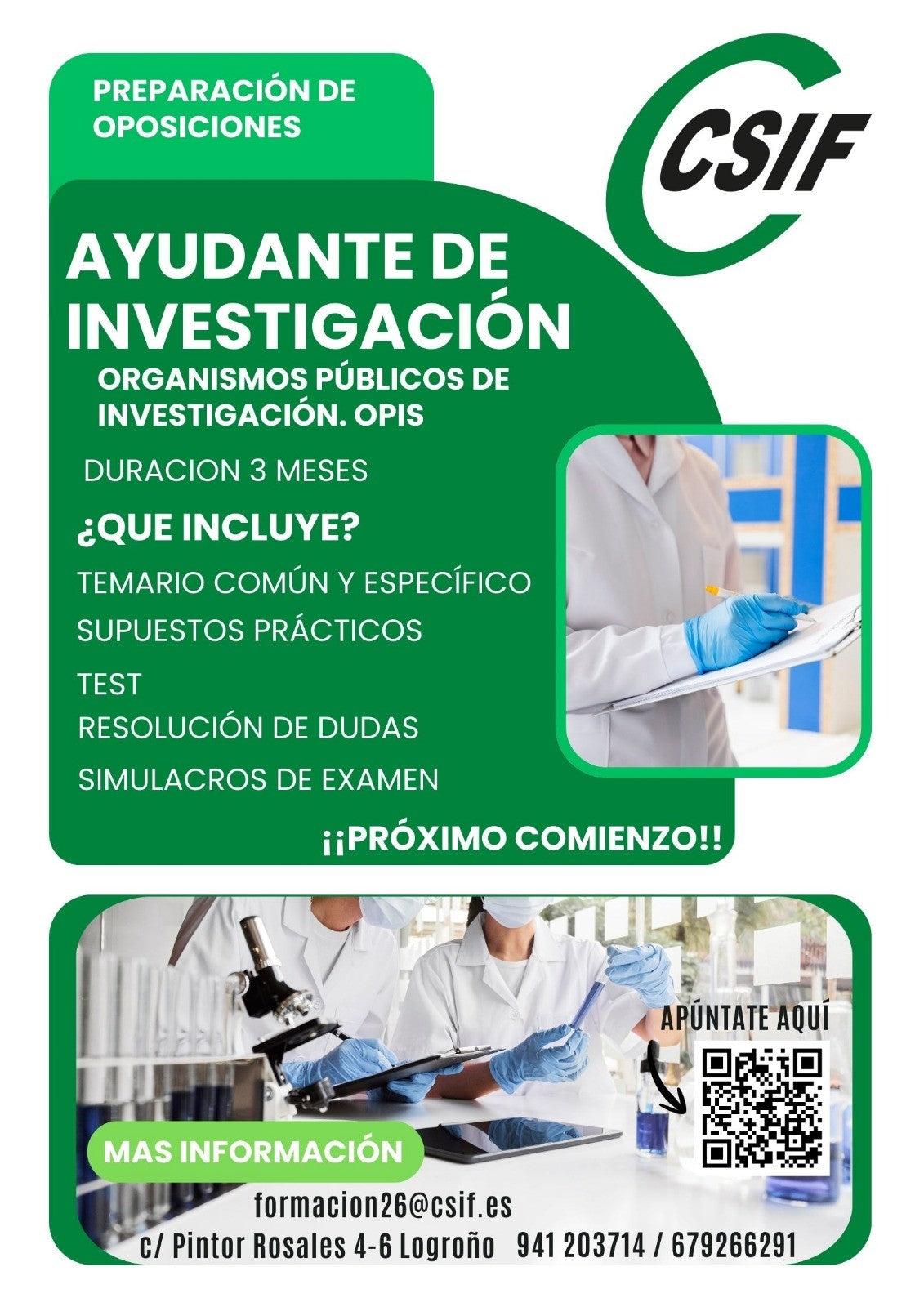 - Temario: Incluye la parte común (leyes administrativas) y la parte específica según la especialidad del laboratorio o centro de investigación.